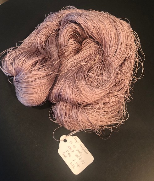 I’ve done 5 scarves from all the color samples. The toughest thing was combining the colors so each scarf showed off it’s colors. The project started as a dye sample project, not a finished product project so I had a real challenge in pulling the colors togeather so they did not clash. BUT I did find out the minimum amount I needed to get great colors so next year I’ll plan bigger skeins.