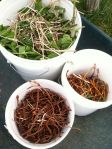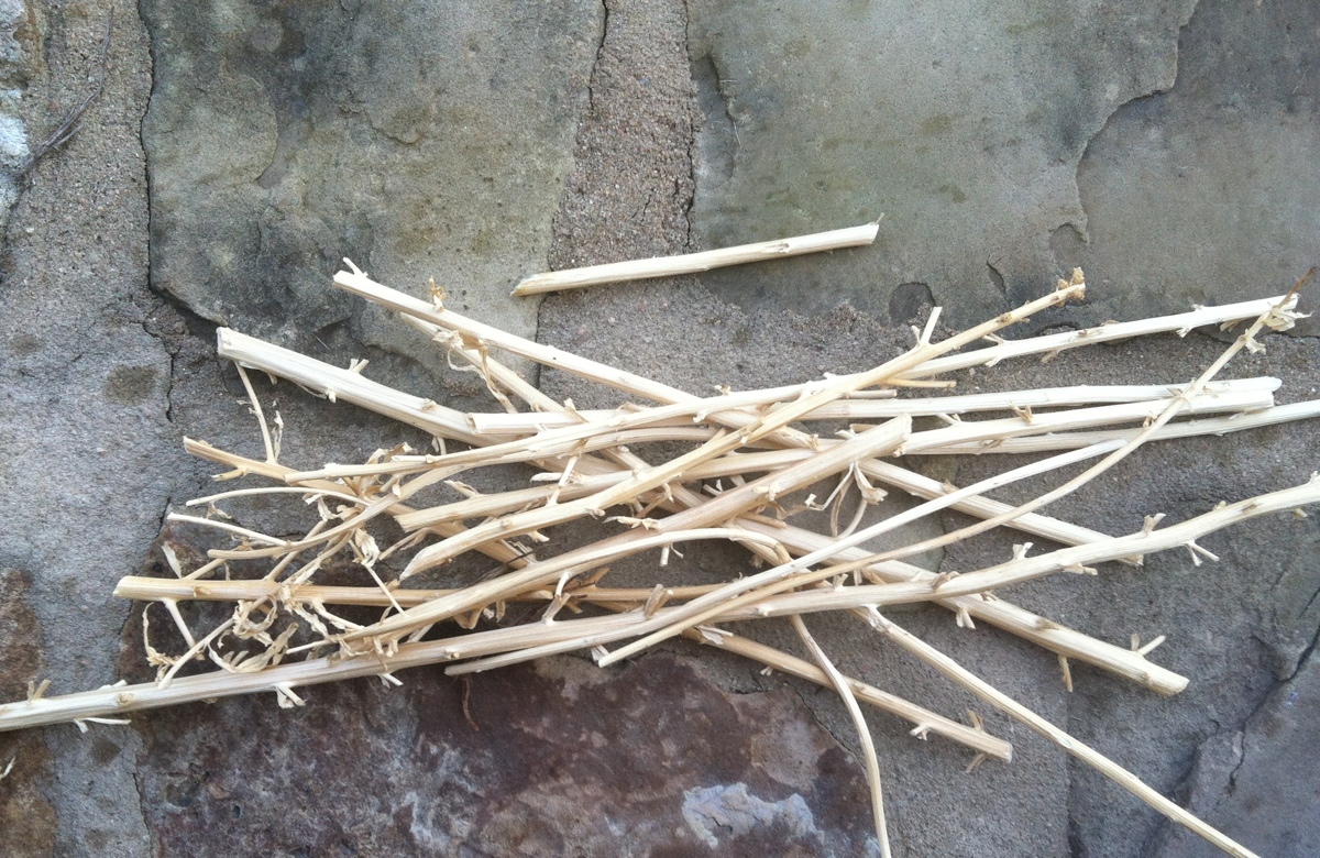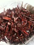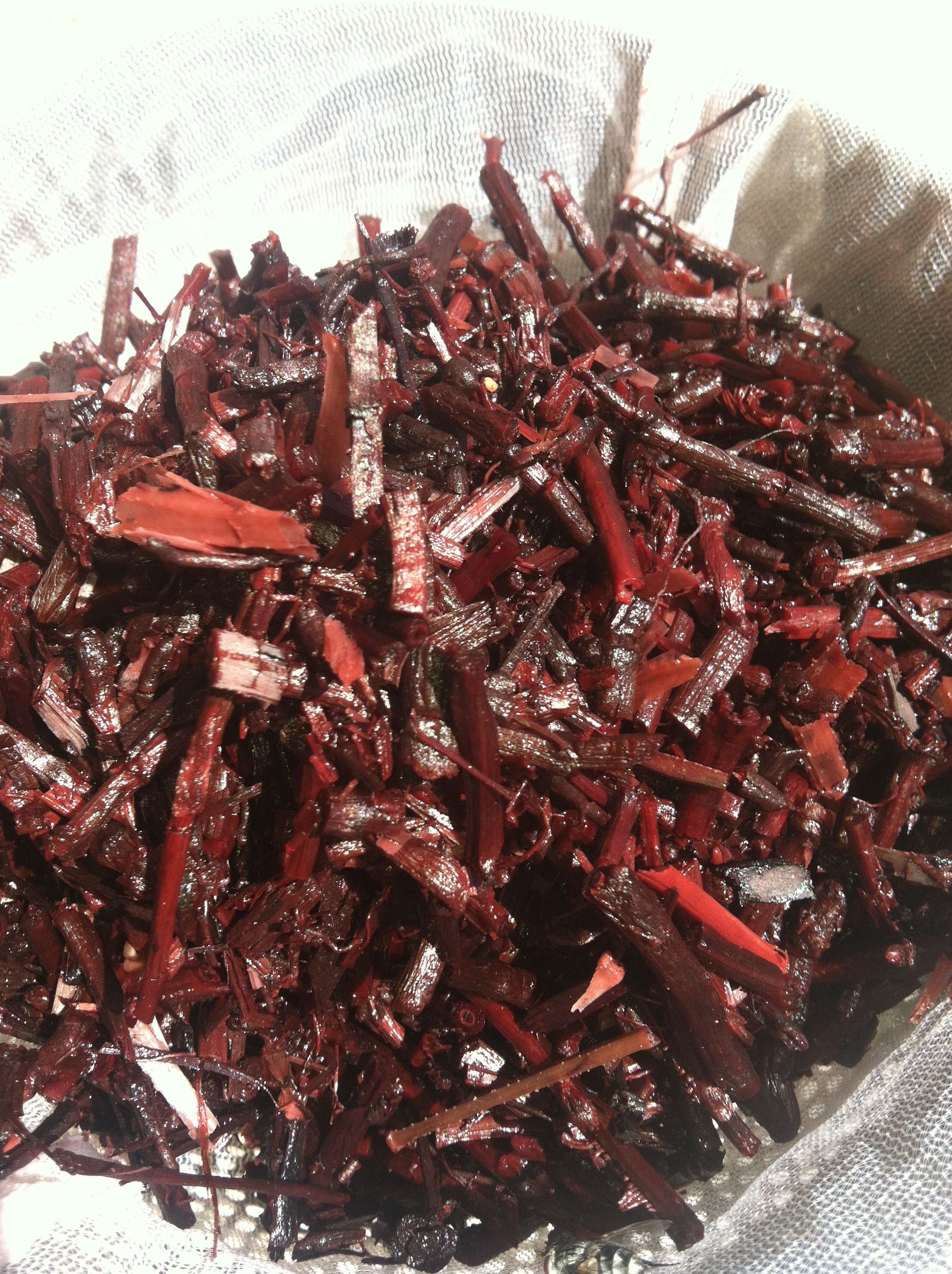 I separated out the leaves, the large roots and the thin runner roots. The leaves are soaking (yes, since March) and I plan to run a yellow dye path with them. I dried the large roots and the thin runner roots and set them aside. The shrinkage from drying was about 90%. I’ll have to dig out my #’s but it was significant. I let the roots dry thru the Texas spring heat from about March 27 to about April 18th.