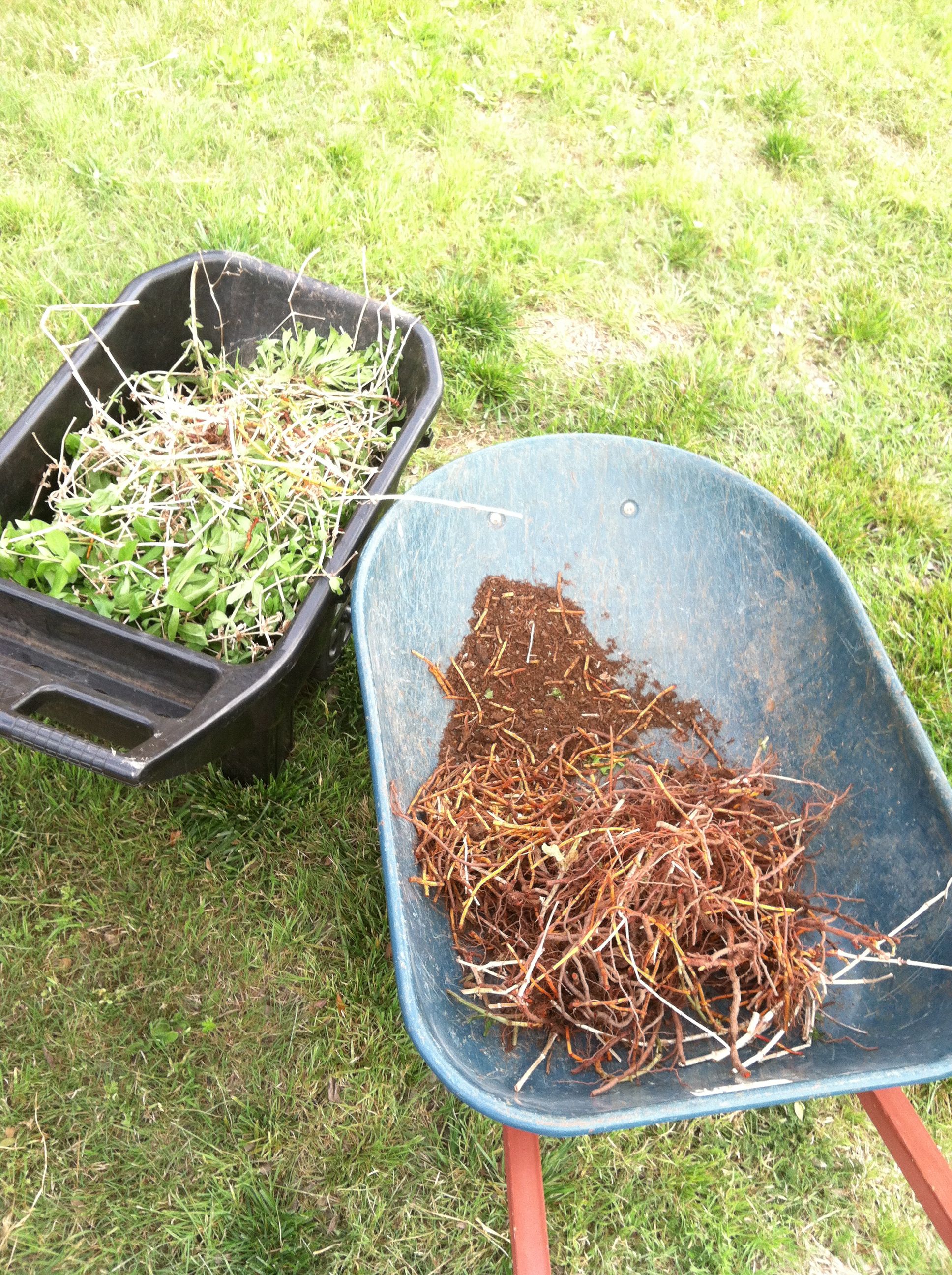 Back in March I posted the “before” as I prepped to dig my madder root after 3 years of Texas sun and Texas well water (heavy on the limestone/calcium). So here is the big dig photos.