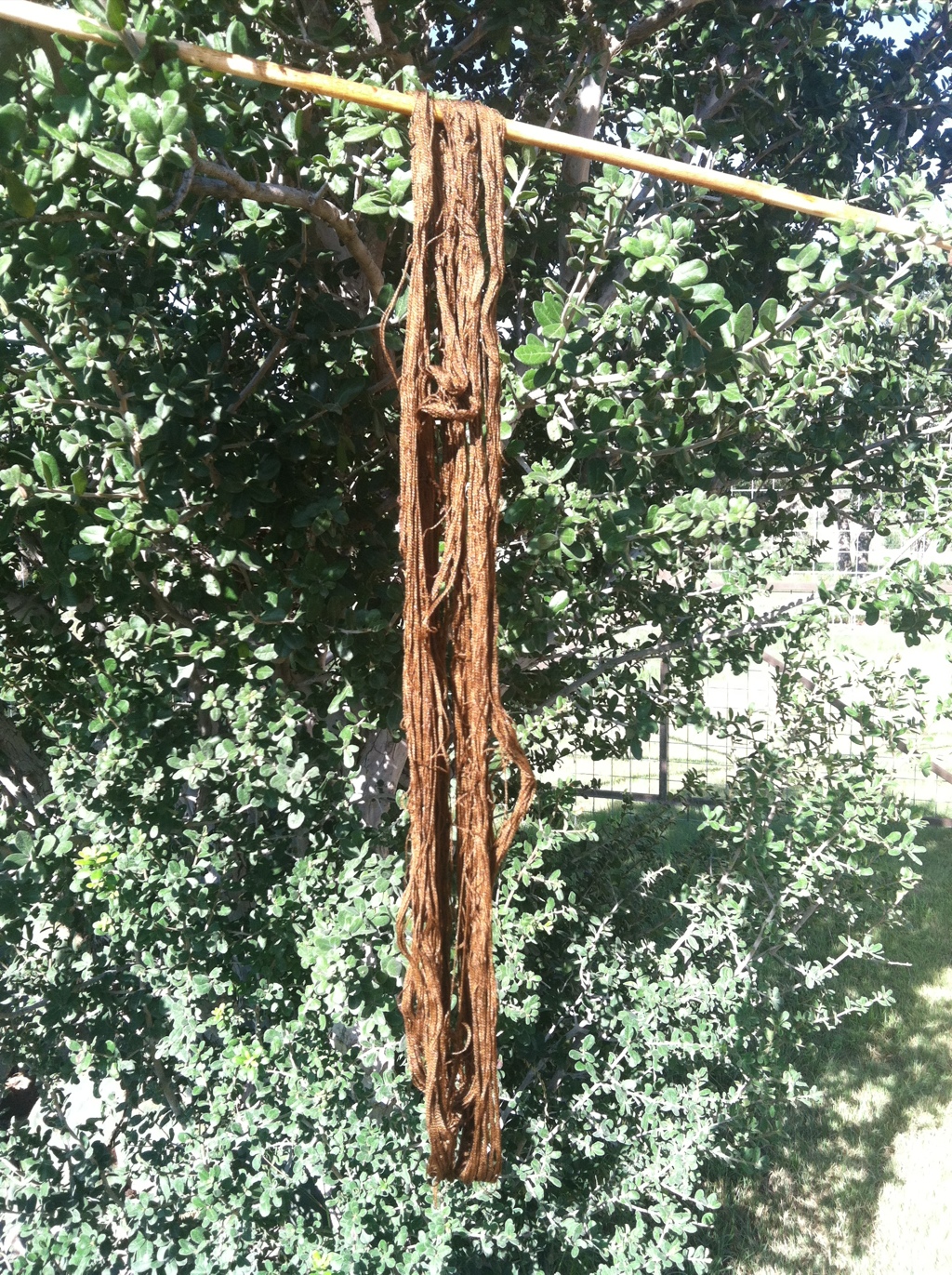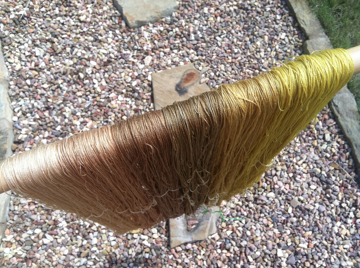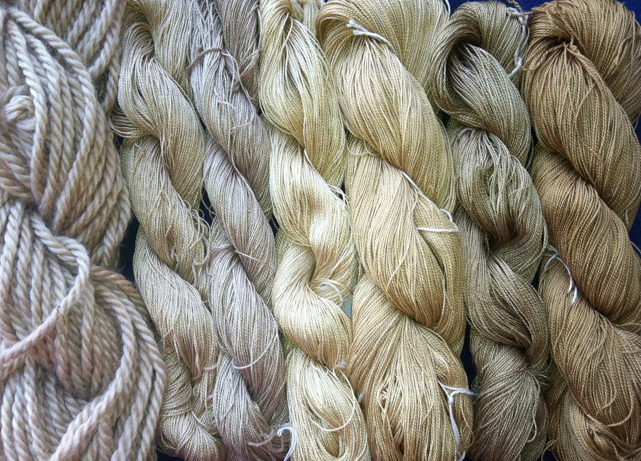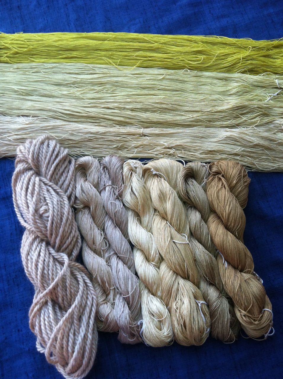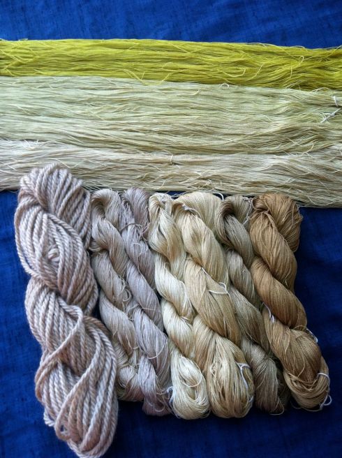One can look at these colors for hours and convince oneself that these are yellow, but if one compares these skeins to the colors produces by cota, agarita and weld one can see how these persimmon colors are all heavily impacted by their tannin content. In other words, there are some beautiful browns, some with a yellow undertone but the brown (tannin) definitely shows.