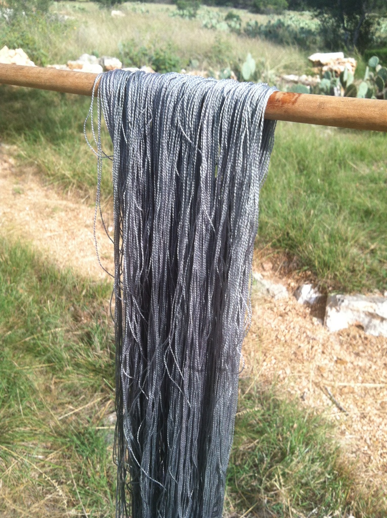 The lichen was soaked for about two months in one part ammonia and 2 part water. An amazing solar photosynthesis happens when you allow the skein to dry slowly in the sun.