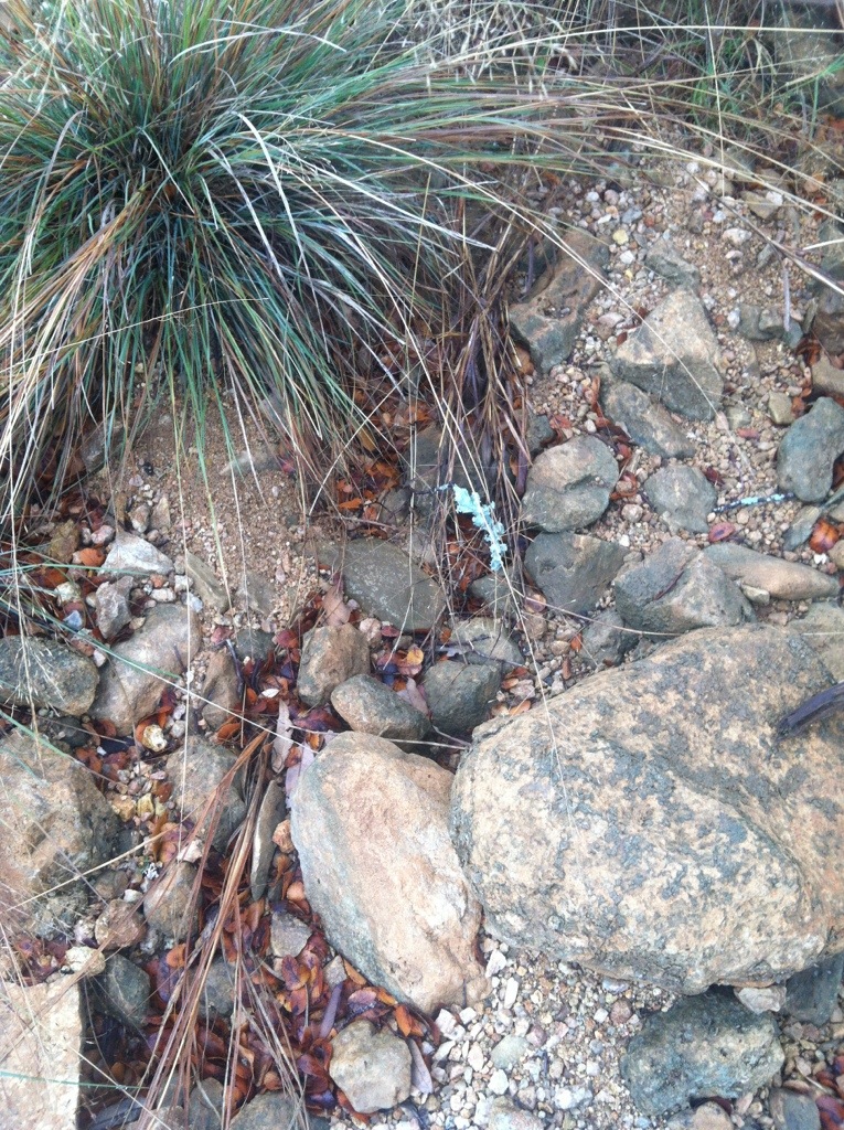 We have not had significant rain since September 2012 so it was really nice to get the .3 inches of rain for the new year! This moisture made the morning walk gathering lichen much easier as the lichen has rehydrated and has a greenish gray glow against the winter grasses and the wet weather creek bed. We haven’t had enough rain for the creek to run but I can assure you that the lichens are happy.