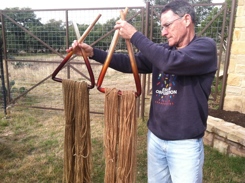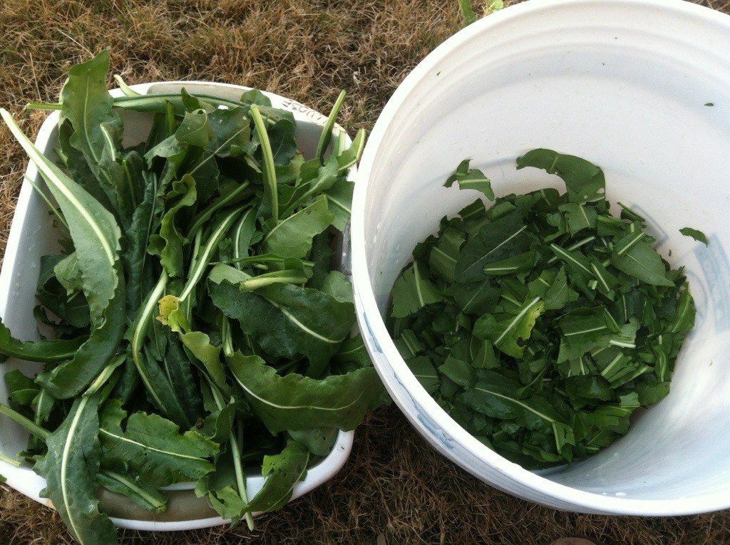 In the meantime as my hero is learning how to turn wool skeins in the dye pot I am harvesting 2nd year woad to over-dye some last year woad blue that I want a shade darker.