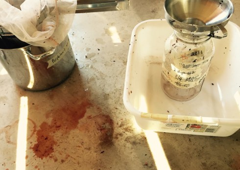The next two below are the large & small roots which soaked in the sun for a week before I added the silk. There is no discernable difference at this point in color between the large or small root. I expect I won’t see any difference until they are rinsed and dried.