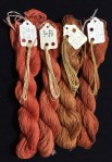 Since I had two healthy exhaust pots left after this run I looked around for some likely candidates for over dyeing since my prepped silk skeins were impostors. I had some small silk skeins of different dyestuff that begged to be over dyed.
