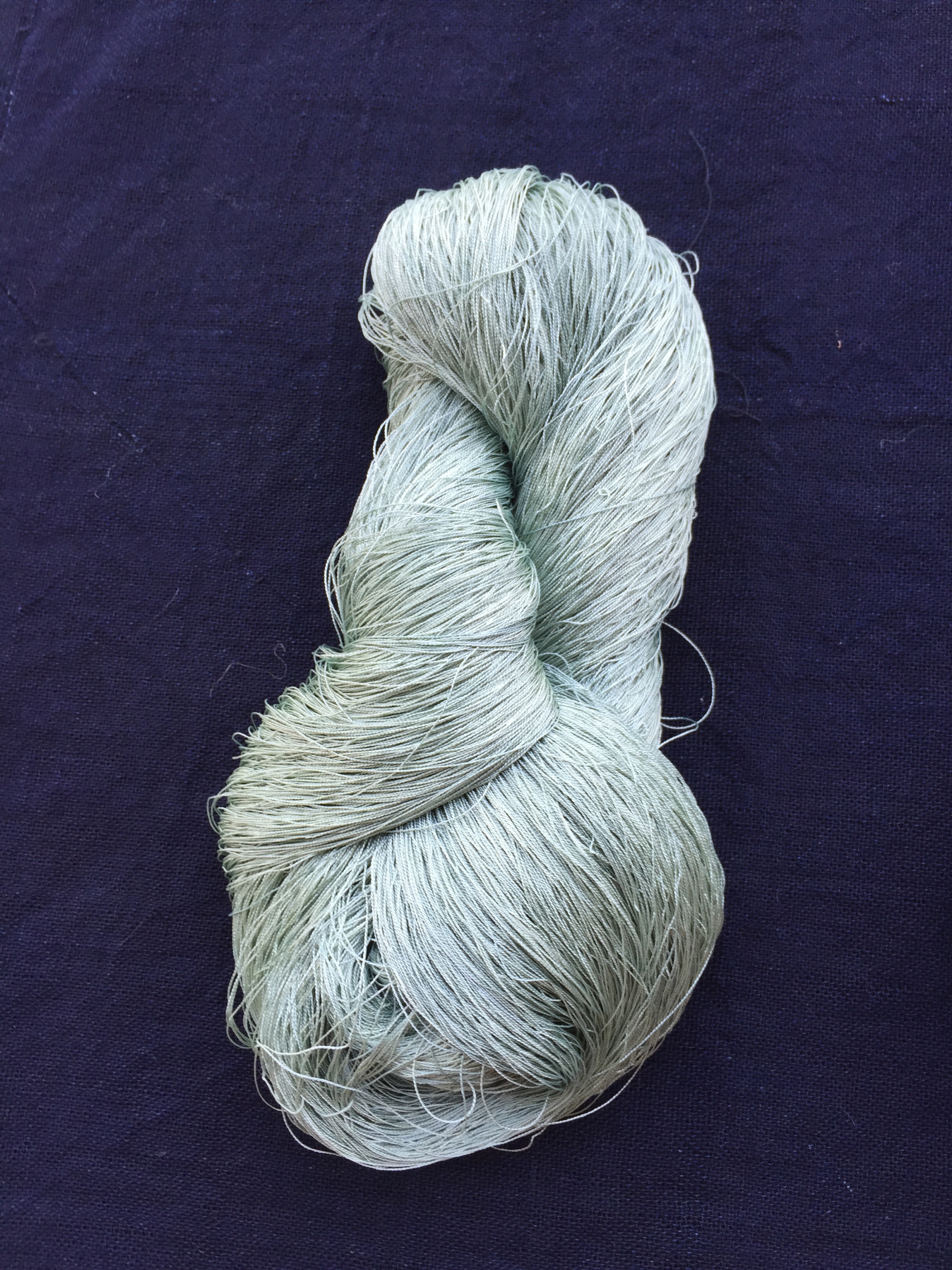 4. Finally the color, I had friends over to do Japanese Indigo blender dye scarves and had plenty dyebath left over. I had a mordanted silk skein on hand and left it in the dye bath. A beautiful mint green resulted, not sure my camera registers the color well. It is deep mint green.