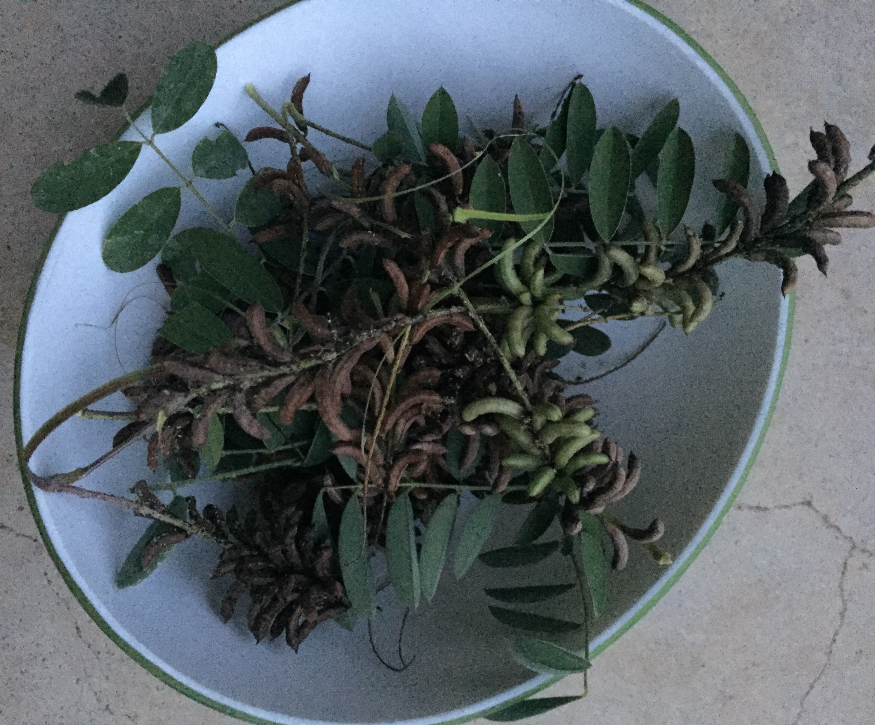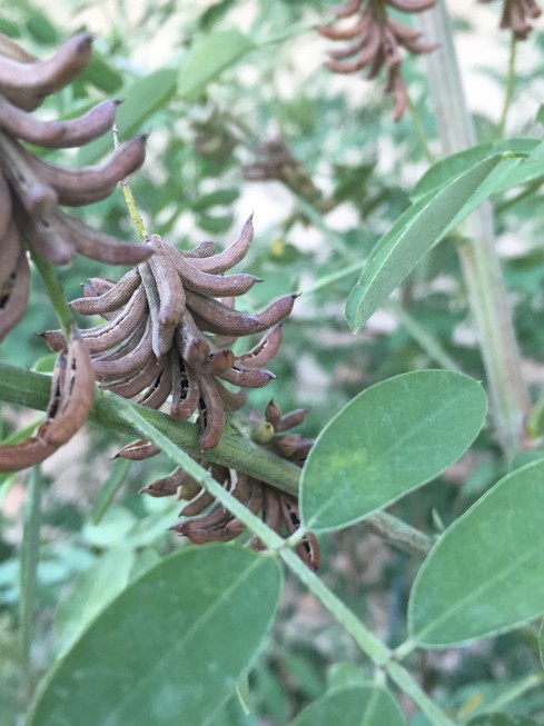 The Indigo Suffruticosa is still teaching me how to harvest it. The bean like seeds ripen to brown black and split open.