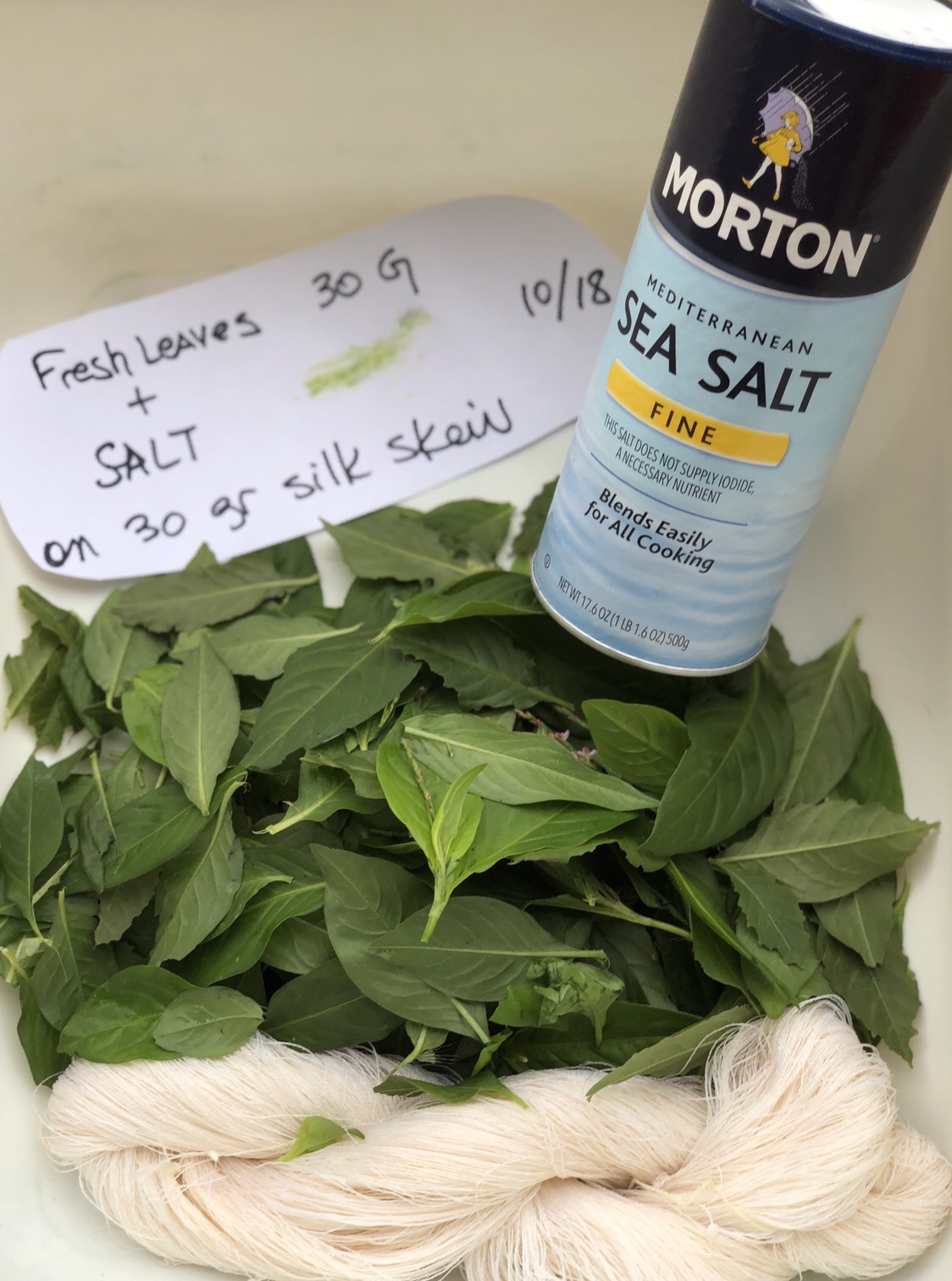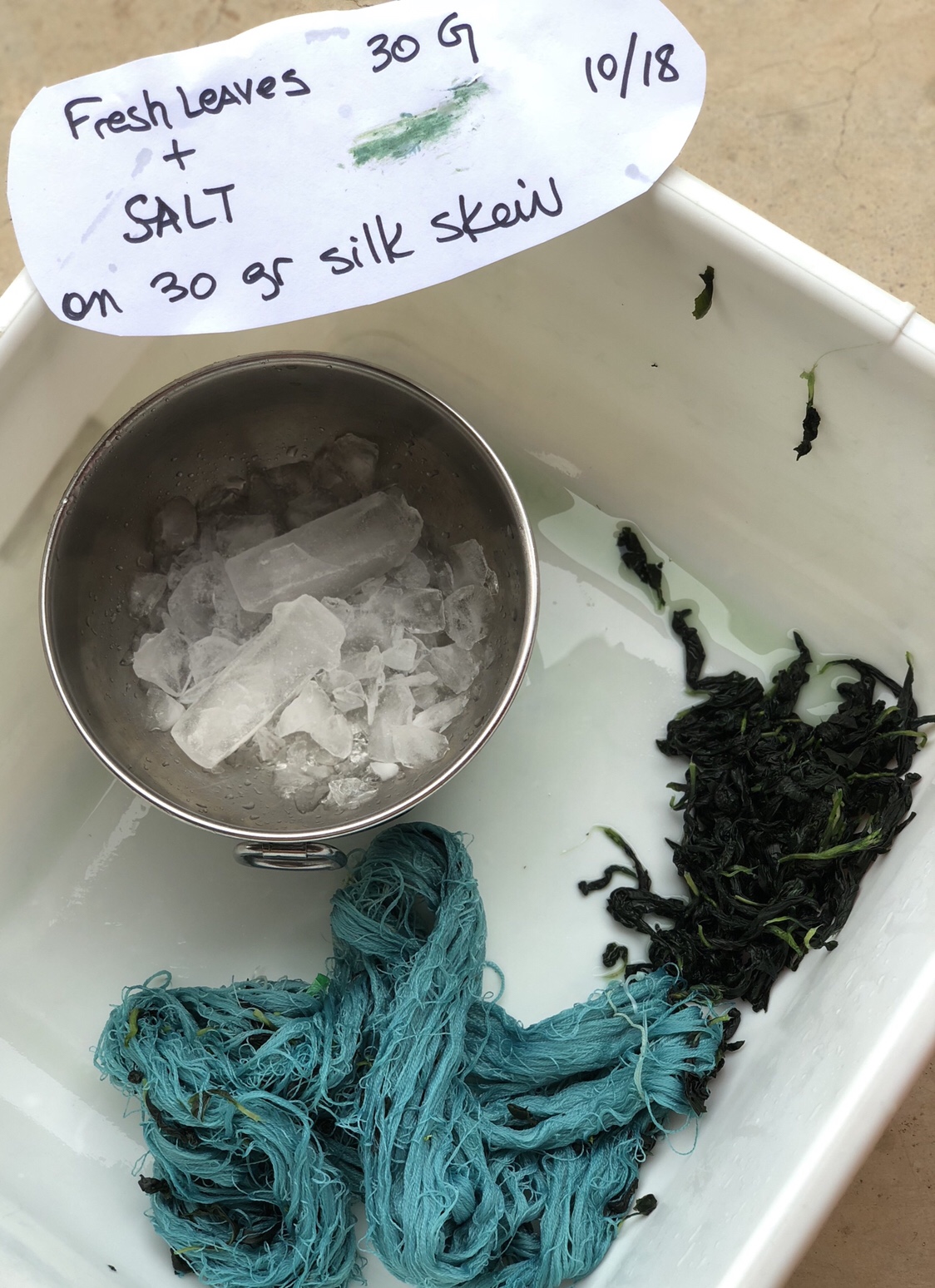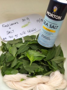 - It is great for small items where you just want use a few leaves for color. In my case, I harvested to dry my indigo for later use and used the leftover leaves that I stripped off the stalks for hanging for the salt rub method. Keep some silk blanks around to use or some tight spun protein silks that can take the rubbing. Remember the mechanical process is rough on the material.