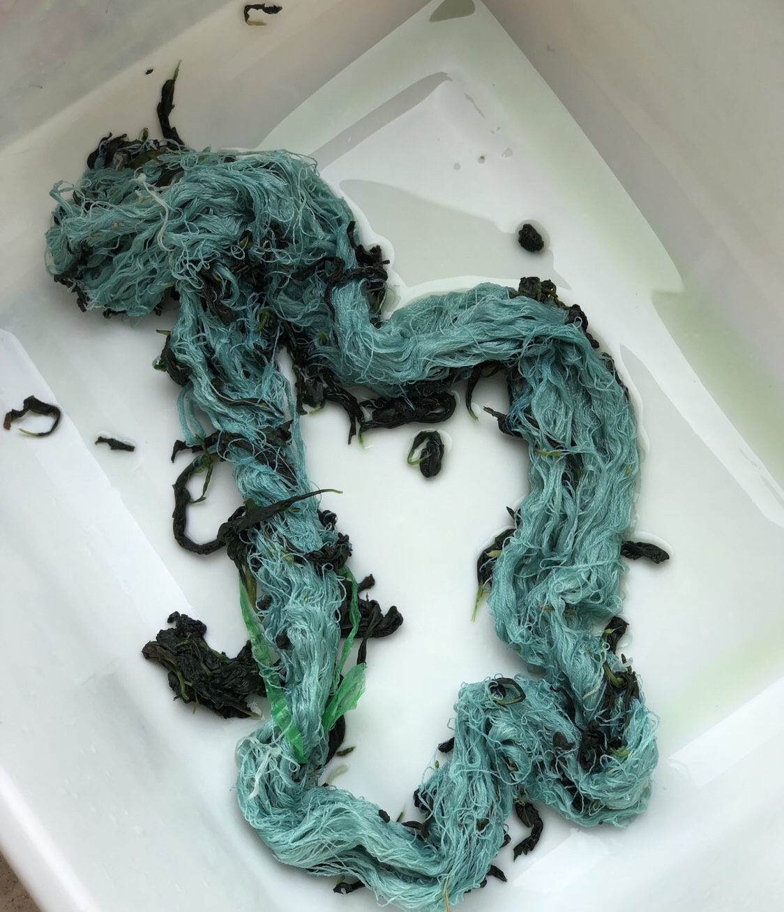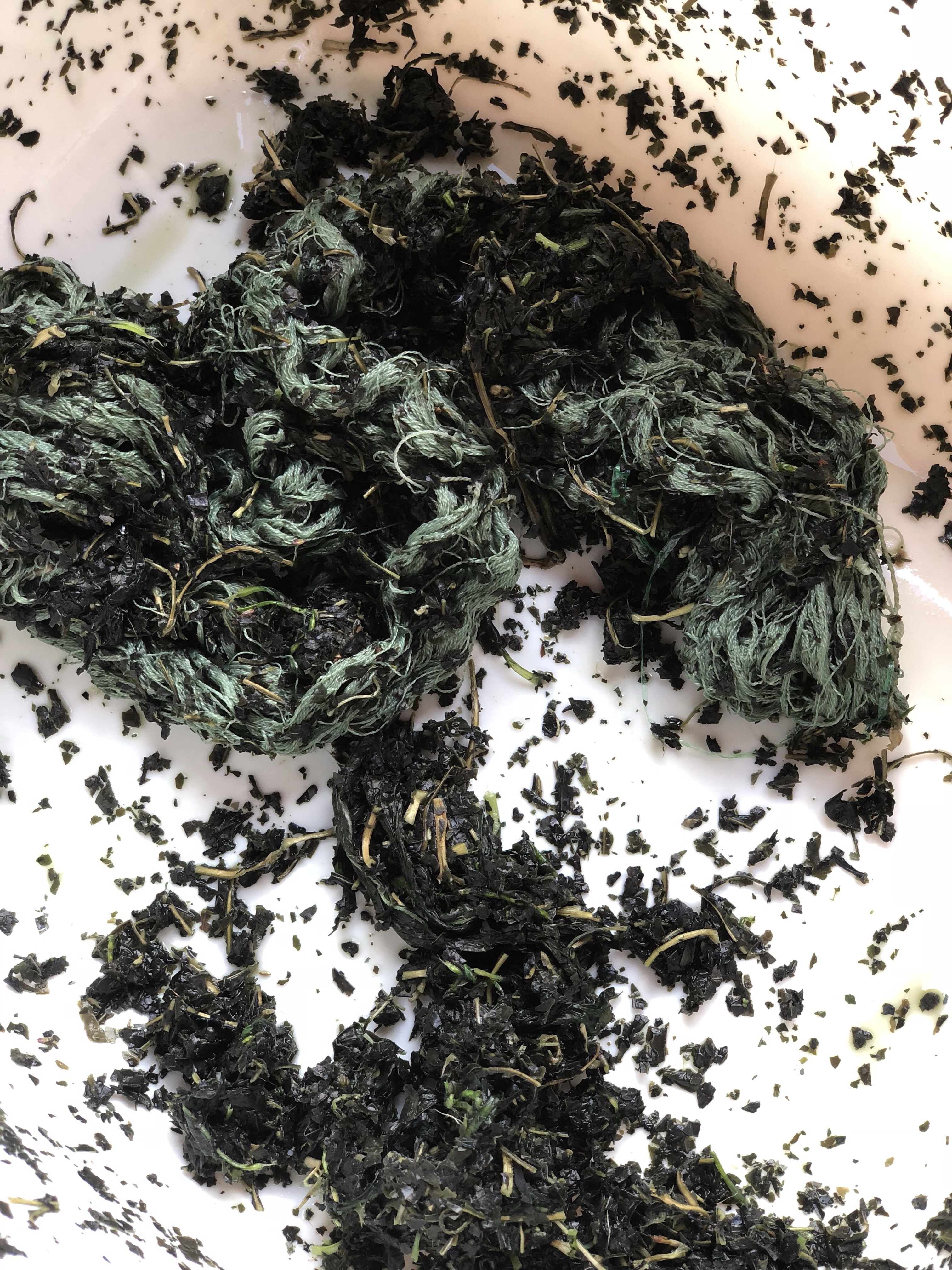 - It is not a high production method, it takes time to smash the leaves and rub the color evenly thru the skein.