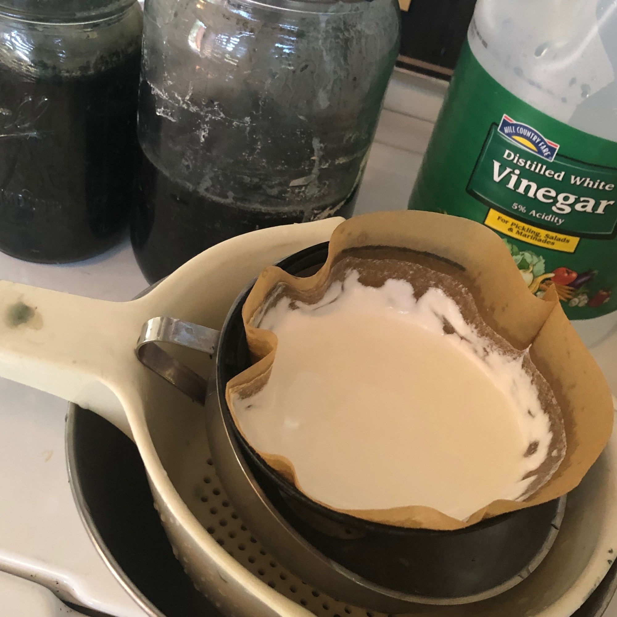 I found 5 gallon buckets and the Dudas 25 micron filter really useful for washing the pigment in manageable amounts. I usually wash it with a 3:1 9% vinegar to water at least twice AFTER the normal filtration is done. I found the wet paste mixed well with the vinegar brew. One learns to mix the vinegar in slowly or you get the lava foam effect and can lose solution from an overflow accident. Keep an eye on the foam reaction. That is the vinegar hitting the calcium carbonate and dissolving it. This is a good thing except when it overflows your filter. This step takes time but if you’ve been extracting indigo from your leaves you aren’t in this for a quick process.