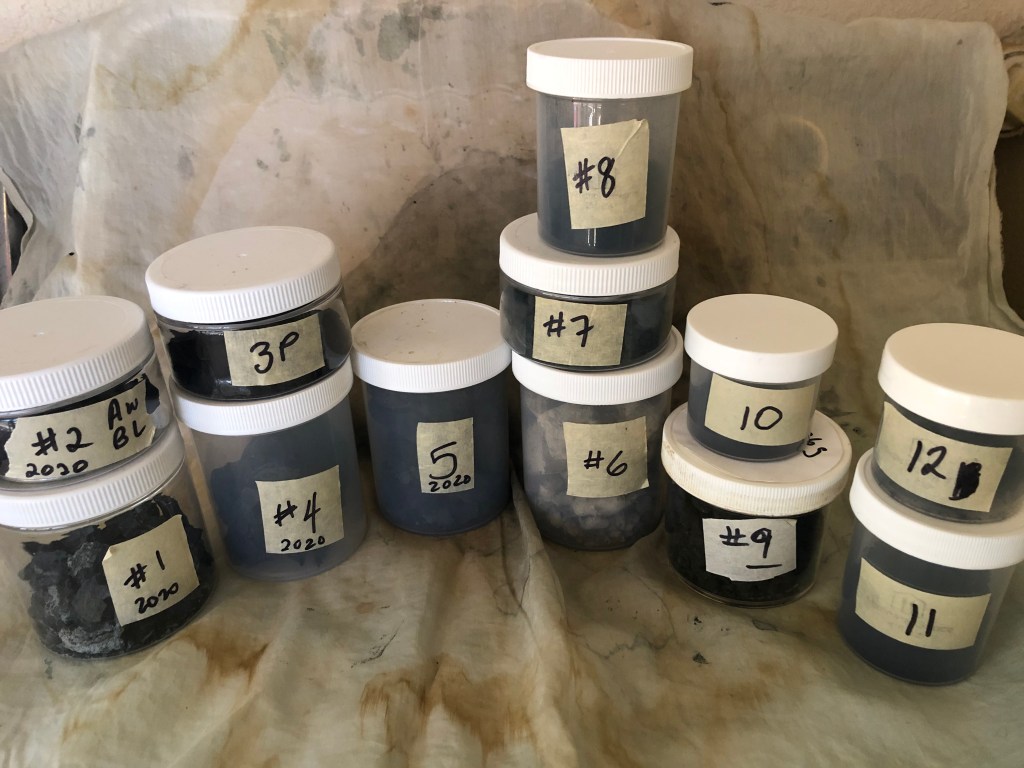 The benefit of washing with vinegar means I am not storing wet paste and the dried and washed pigment is MUCH easier to grind. The volume reduction is significant between wet paste and dried pigment and does not require a refrigerator or extra storage space. If you do the math on my chart above you’l see that I had a 60 – 90% reduction in volume. Here is a link to a YouTube video on my vinegar washing, you’ll bounce over to YouTube, sorry, WordPress changed some functionality and I could not get it directly into my blog. This gives you a view of how I wash my home grown indigo and ALSO how I wash the Big Jar at the end of the season to retrieve my indigo for the next solar season. I learned about storing mud from one season to the next from the indigo masters in Sapa, Vietnam who were very genorous with their knowledge. I met them thru Above The Fray – Textile Travel, a great journey with friends a couple of years ago.