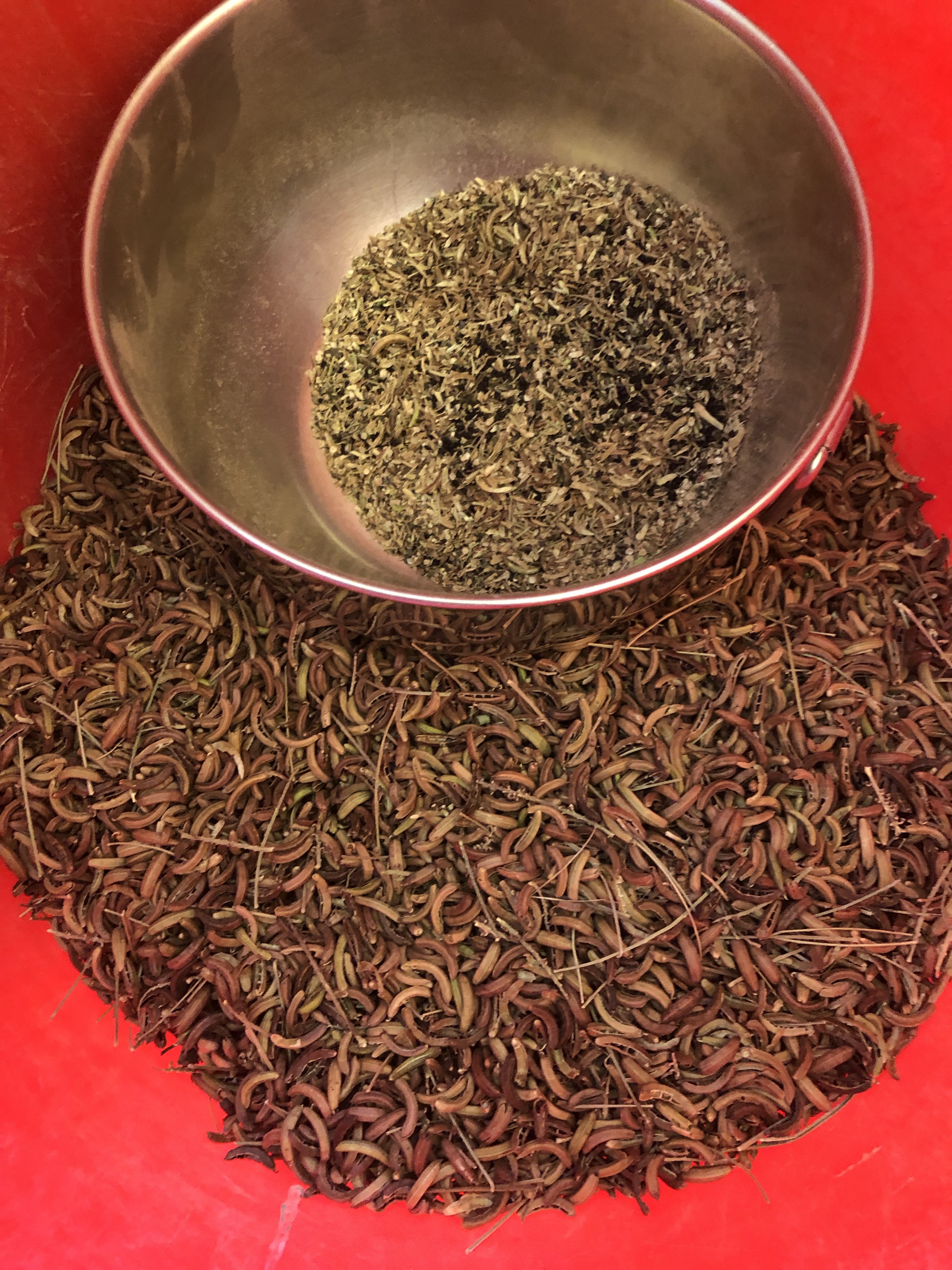 It is time to prep for the March winds to blow the chaff separate from the Suffruticosa seed. Let’s review what has happened up til now. Nov 2021 the weather cooled down and the seeds ripened. I took time to collect dried indigo leaves, gather the seed pods to dry and started shaping my bushes so they could be covered when the freezes swept in during Jan/Feb. It is all weather dependant. Will they survive or not? Each season that is the question. I am located in the far northern growing region of this plant in the Central Texas Hill country, similar to the olive tree growth area. When it freezes too much, our bushes are gone. But we have seed!