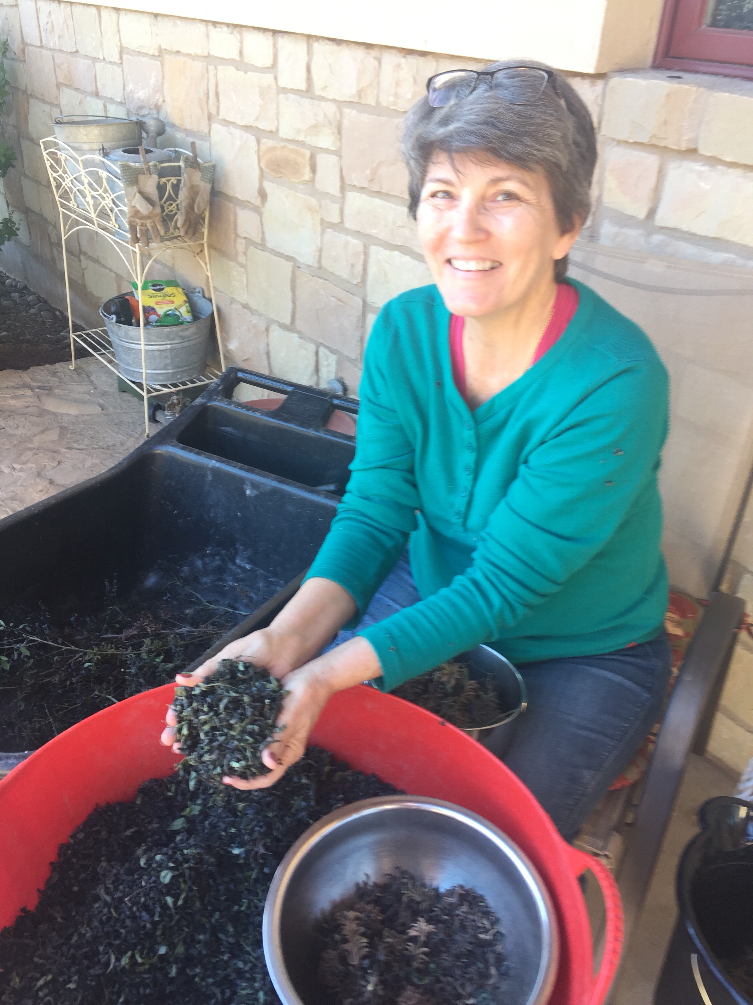 This means I can harvest and dry my indigo over the growing season and have my indigo on hand when I have time to enjoy the dye pot process. With the violent weather and winds that we can have in the Texas Hill country it is very attractive to be able to harvest and dry part of your harvest and protect it from unpredictable climate.