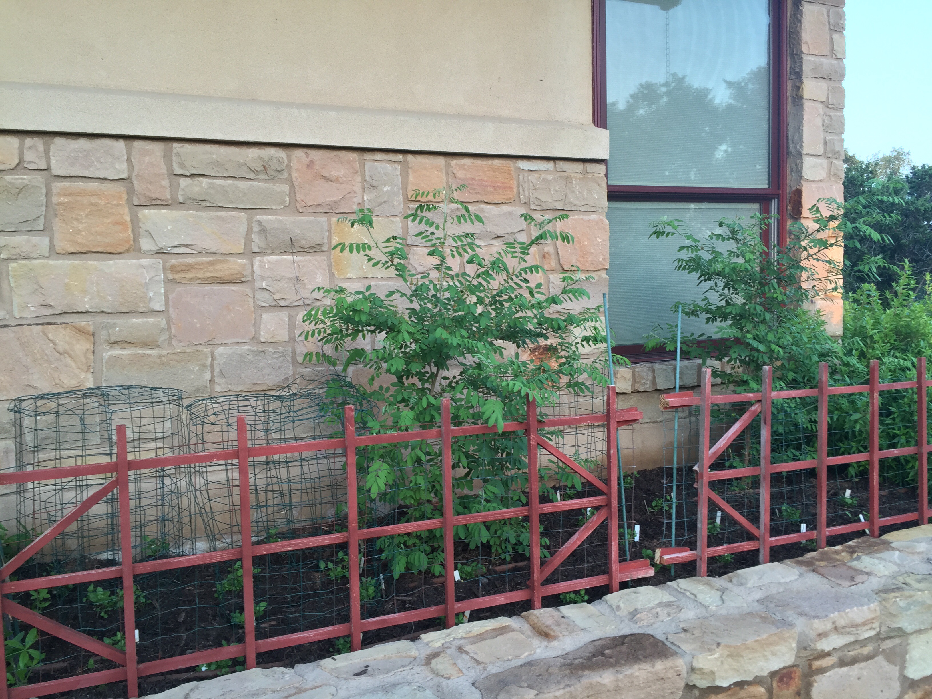 Well, the damn varmint just came coming back and digging and succeeding in tipping out the food without tripping the trap. Yes, I know if we had dogs we would not have these critter issues. I am just not a dog person. I was running out of time due to some travel plans so I constructed Fort Indigo. A combination of old lattice frames, gates and garden wire. I reset the garden prep and watched it for another week to see if that would stop the digging. Whoever did try to get in and wandered thru the outside madder root but my small fort seemed to hold them at bay.